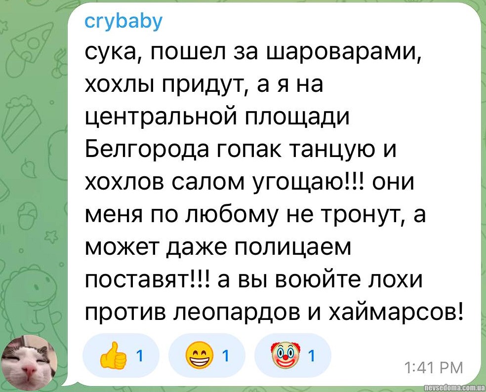 - "Пішов за шароварами, хохли прийдуть, а я на центральній площі Білгорода гопак танцюю!"