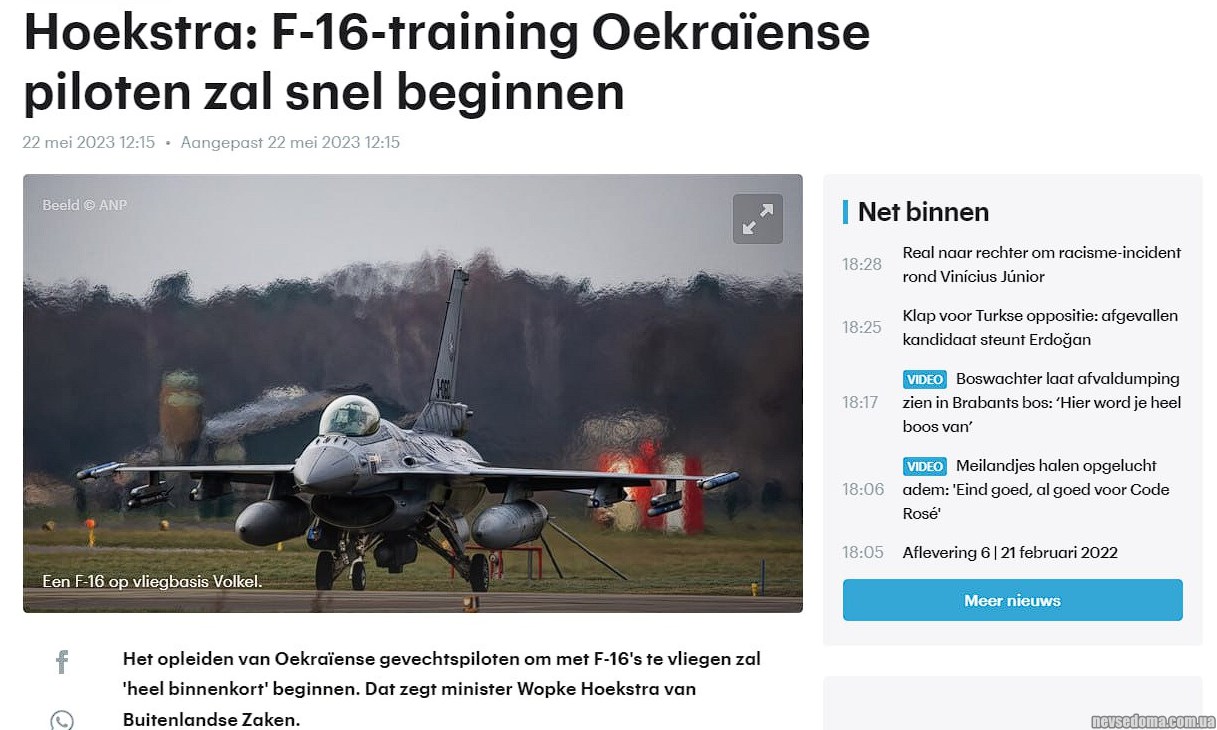 - Навчання українських пілотів на F-16 розпочнеться "дуже скоро",- Міністр закордонних справ Нідерландів Вопке Хукстра