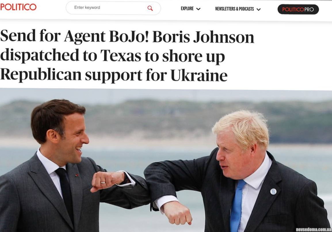 Нещодавно Джонсон відвідав (https://www.politico.eu/article/send-for-agent-bojo-boris-johnson-dispatched-to-texas-to-boost-republican-support-for-ukraine/) Техас, де намагався переконати республіканців підтримати Україну. Під час своєї промови він знову не втримався від звинувачень на адресу Макрона.