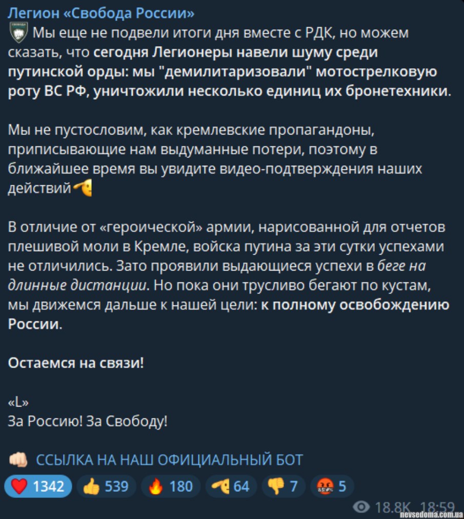 - Мітки з підтримкою Легіону «Свобода Росії» починають з'являтися по всій Росії.