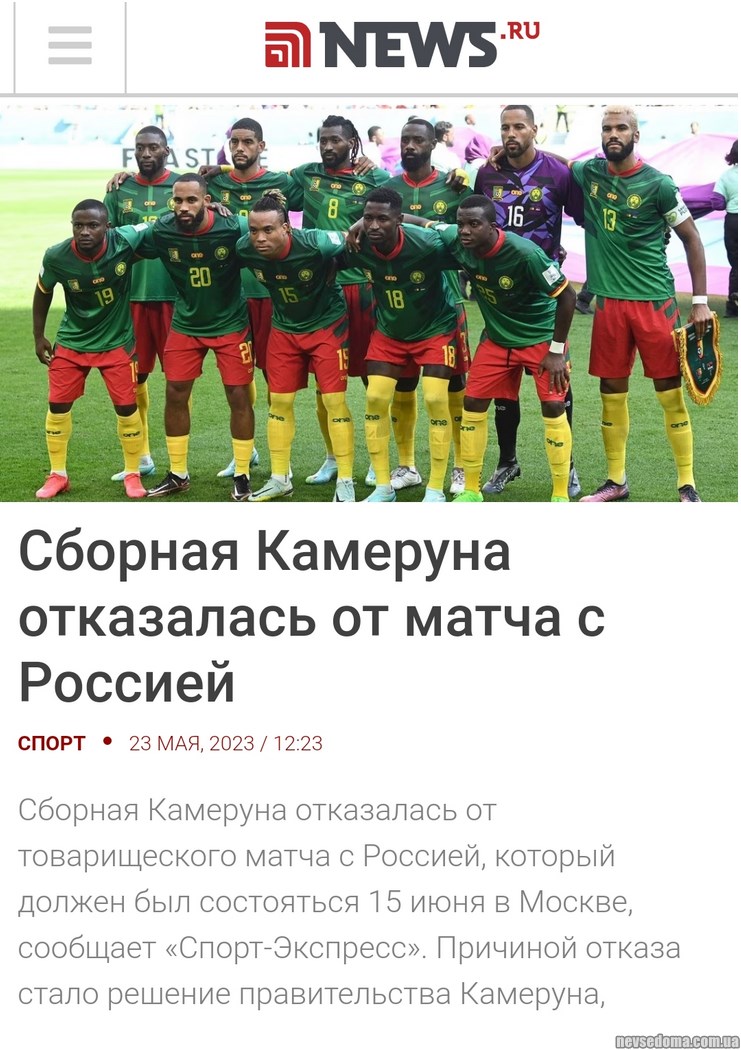 - Навіть збірна Камеруну не хоче грати товариський матч із РФ