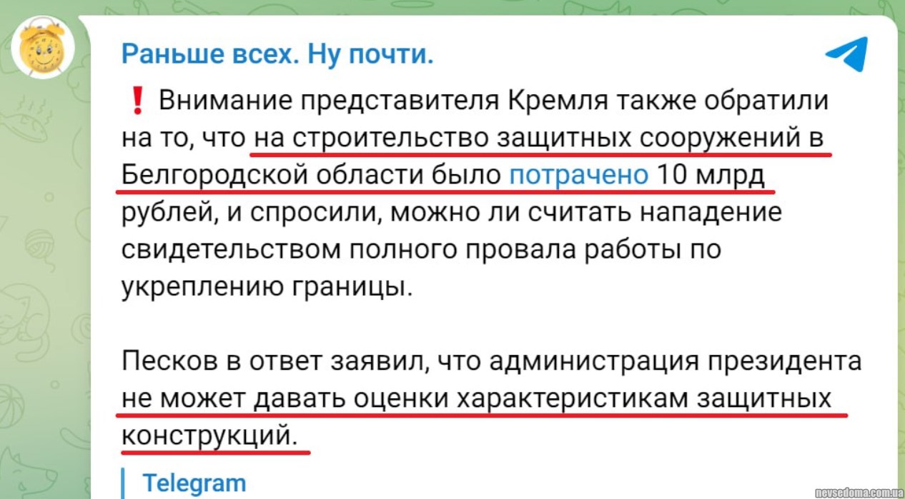 ▪️У кремлі висловили «глибоке занепокоєння» щодо прориву, але жодної адекватної реакції на прорив на свою територію так і не було.