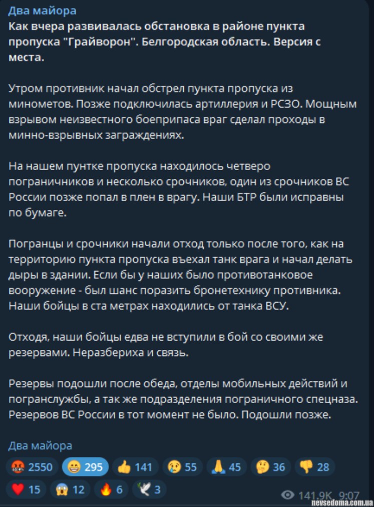 - Сили Свобода Росії, на блокпосту Грайворон у Білгородській області.