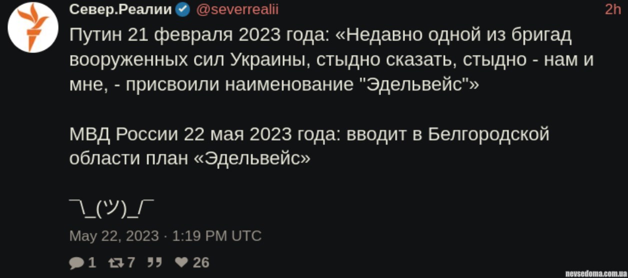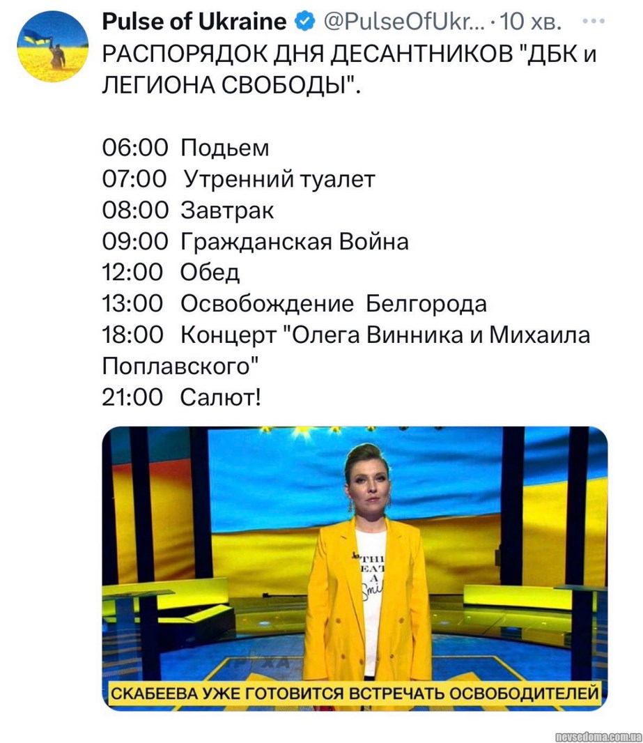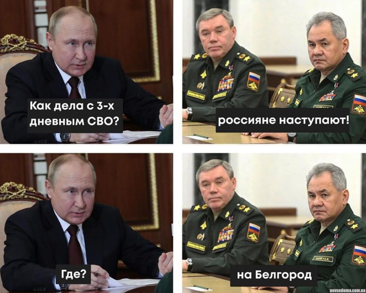 - Від Київ за три дні до того, що Українські диверсанти розкидають у Білгородській області листівки із закликом здатися, як це робили нацисти у роки Великої Вітчизняної війни.