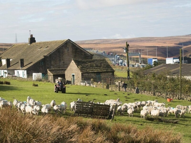 Автомагістраль M62, що з'єднує міста Ліверпуль і Халл Північної Англії, відома тим, що прямо між двома її відгалуженнями в Калдердейл знаходиться житлова ферма. Унікальна ферма входить до десятки найвідоміших пам'яток мережі автомагістралей Великобританії, і про неї ходять різні історії та міфи.