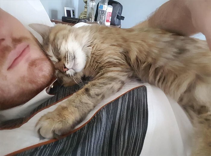 2. "Мої коти завжди прагнуть бути ближче до мого обличчя. Іноді навіть лягають прямо на нього. Якщо я не можу дихати – це моя проблема"