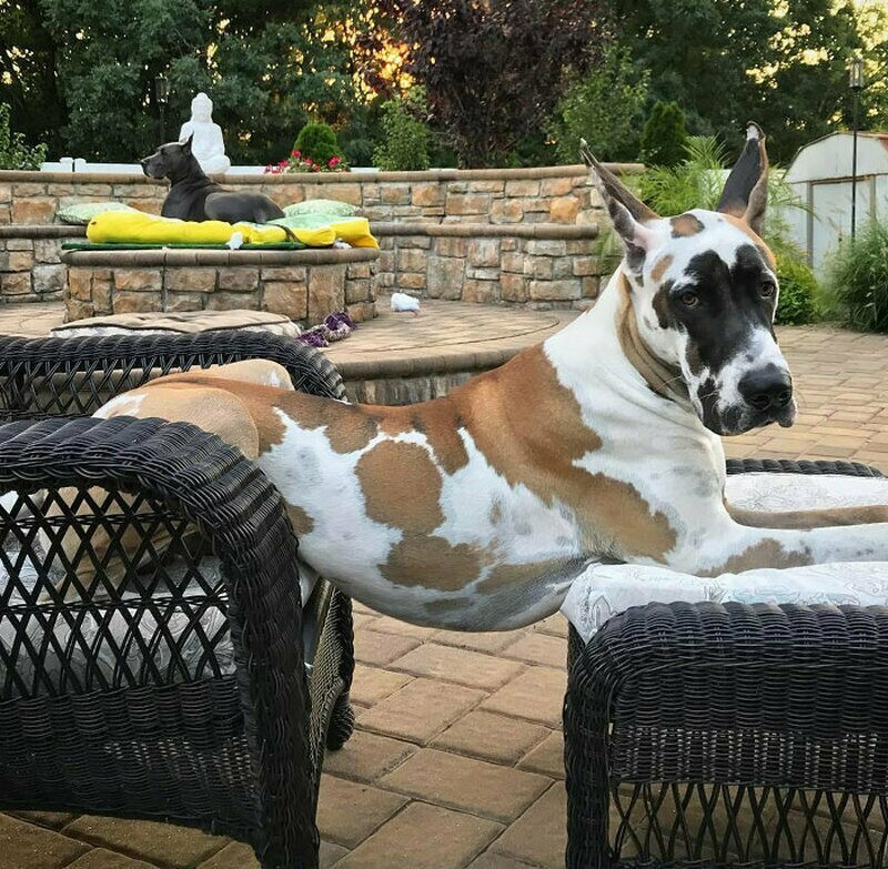 Смішно спостерігати, як доги намагаються сидіти на дивані
