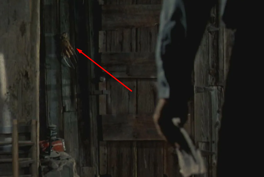 А ось у фільмі "Зловісні мерці 2" ми можемо побачити оригінальну рукавичку Фредді Крюгера, що висить на стіні.