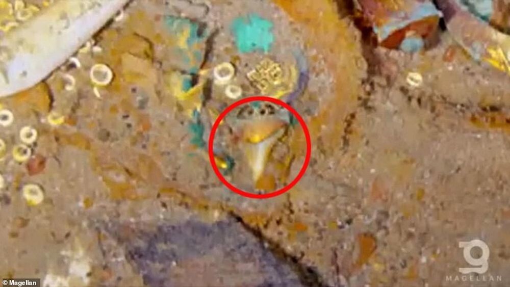Тепер під час перегляду знятого матеріалу фахівці помітили характерну форму акулячого зуба та при найближчому розгляді зрозуміли, що це намисто.