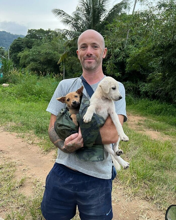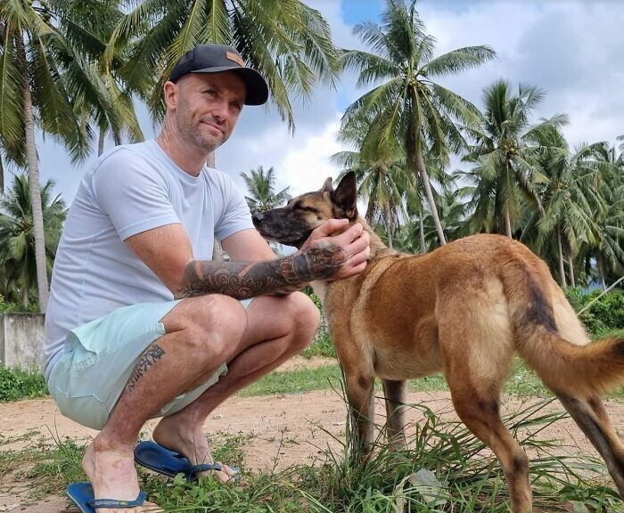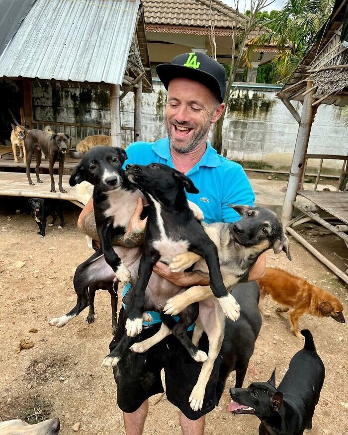 Ірландця Найла Харбісона називають "собачим героєм". Колись чоловік страждав від алкозалежності, але одного разу опинившись у відділенні інтенсивної терапії він вирішив щось змінювати в житті. Так і почався його шлях до добрих справ. Він переїхав до Таїланду, де зараз активно рятує бездомних собак.
