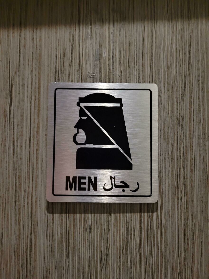 24. Табличка туалета в аэропорту Абу-Даби. Выглядит, как арабский Бэтмен