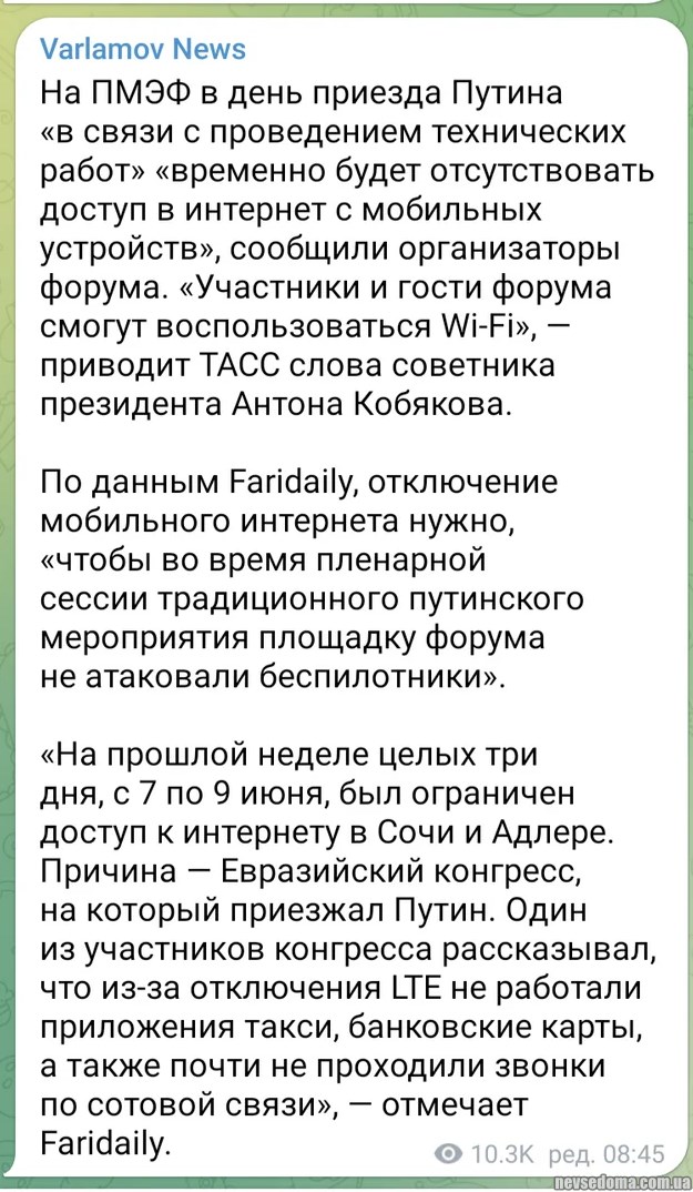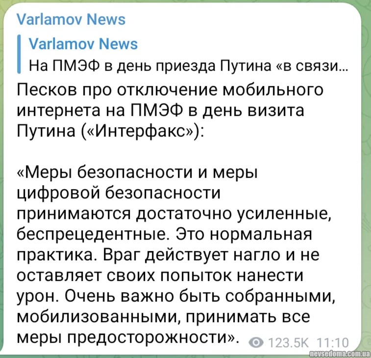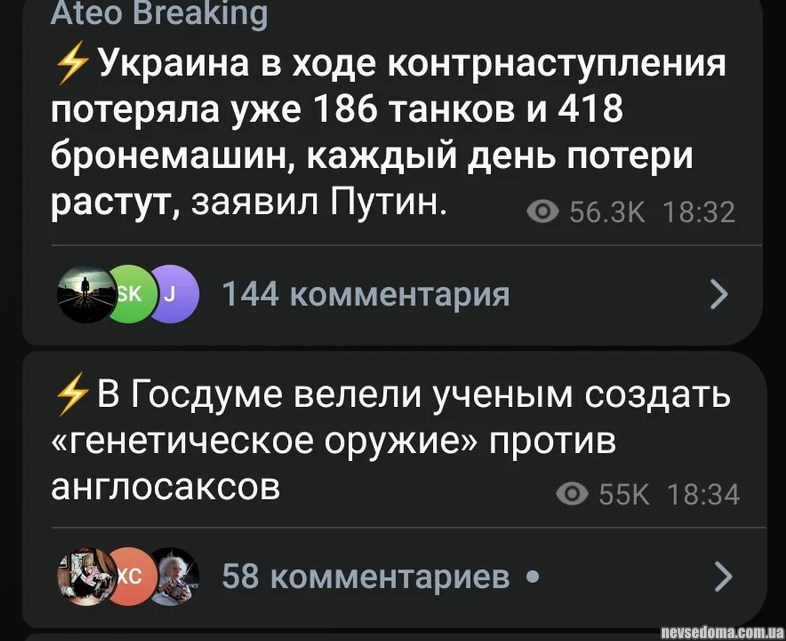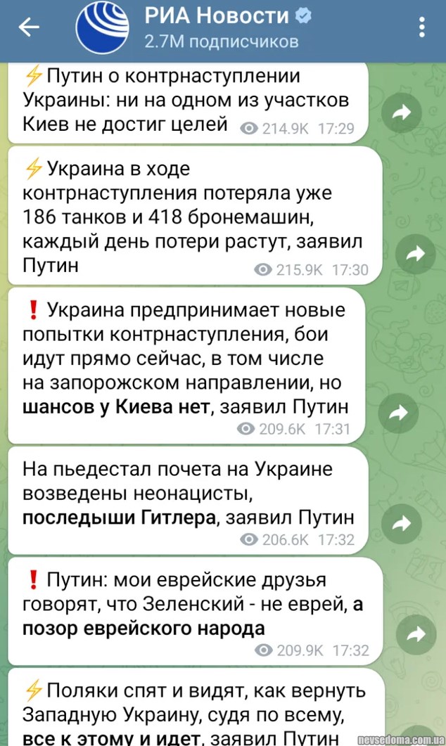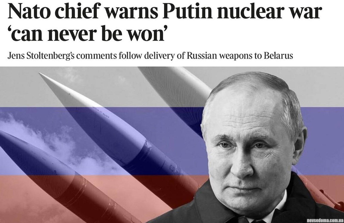 Видання пише (https://www.thetimes.co.uk/article/putin-nuclear-weapons-belarus-nato-meeting-bn7r9h325), що згідно з заявою Путіна, продовження поставок західної зброї в Україну може спровокувати ядерний конфлікт з США, але оскільки Вашингтон не захоче ризикувати тим, що його власні міста будуть зруйновані внаслідок ядерної війни, навіть удари по об'єктах у Європі не змусять США мститися.