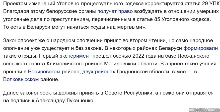 - У Білорусі ухвалили закон про "суд над мертвими" та народне ополчення.