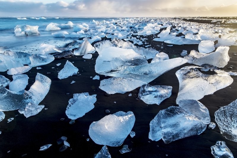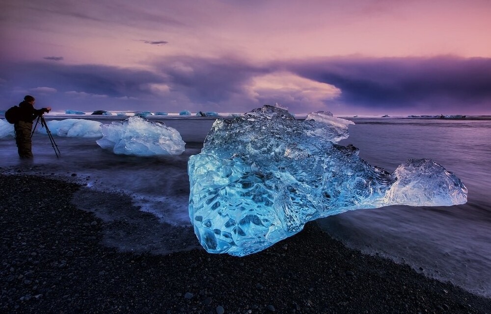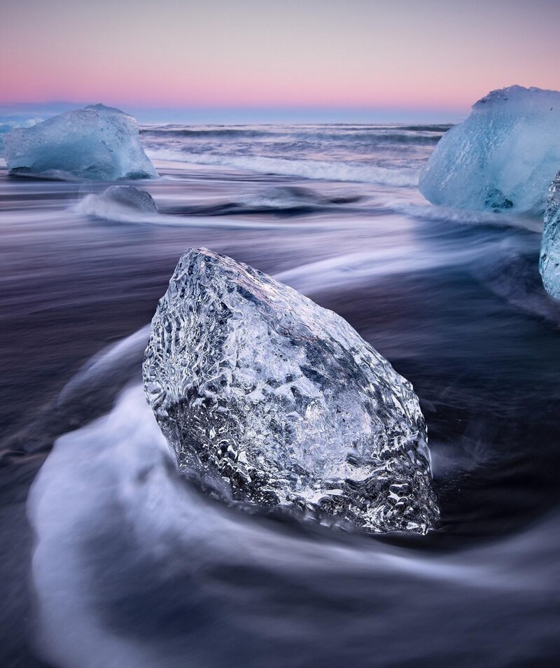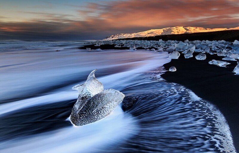 Дивовижний пляж Даймонд-Біч, вигляд якого змінюється трохи чи не щодня, знаходиться в Ісландії неподалік льодовика Брейдамеркурйокюдль і льодовикової лагуни Єкюльсаурлоун.