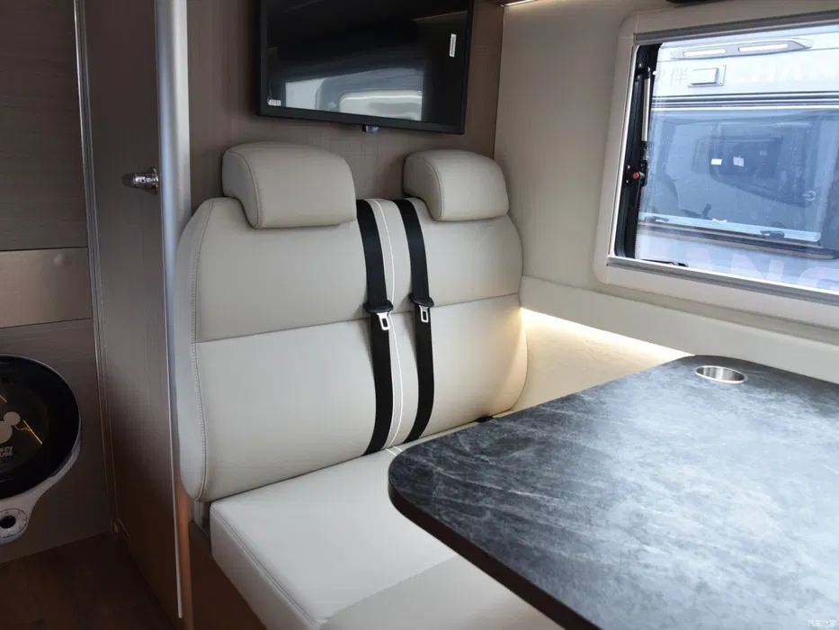 У житловому модулі є обідня зона зі столом та чотирма кріслами, повноцінна кухня з раковиною, безліч місць для зберігання та санвузол, у якому можна прийняти душ. Двоспальне ліжко розташоване в надбудові над кабіною.
