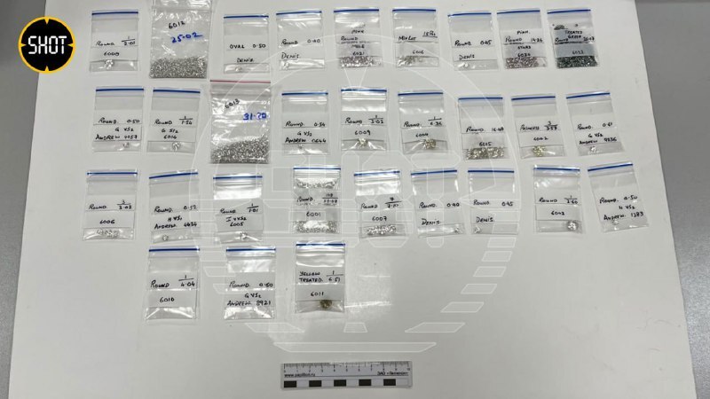 Під час огляду в кишенях сорочки чоловіки виявили ще 47 діамантів ограновуванням від 0,5 до 6 карат та 7 пакетиків з дрібнішими камінням.