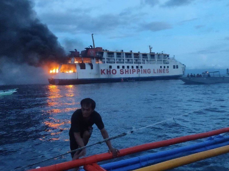 Пором зі 120 пасажирами на борту спалахнув у морі біля Філіппін (3 фото + 2 відео)
