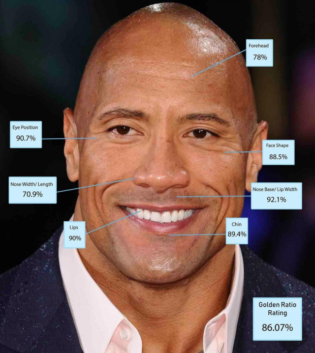 За результатами виміру, актор гарний на 86,07%. Підсумки злегка зіпсувала форма носа та голови.