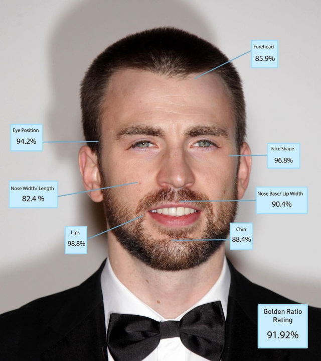 У Кріса Еванс все прекрасно і практично ідеально. З легень недосконалостей Джуліан Де Сільва відзначив у актора лише ширину носа.