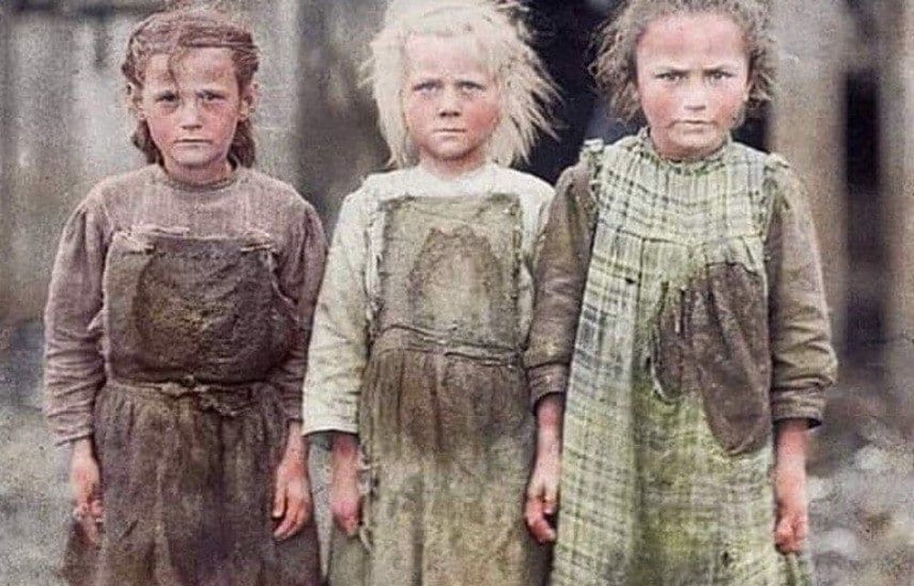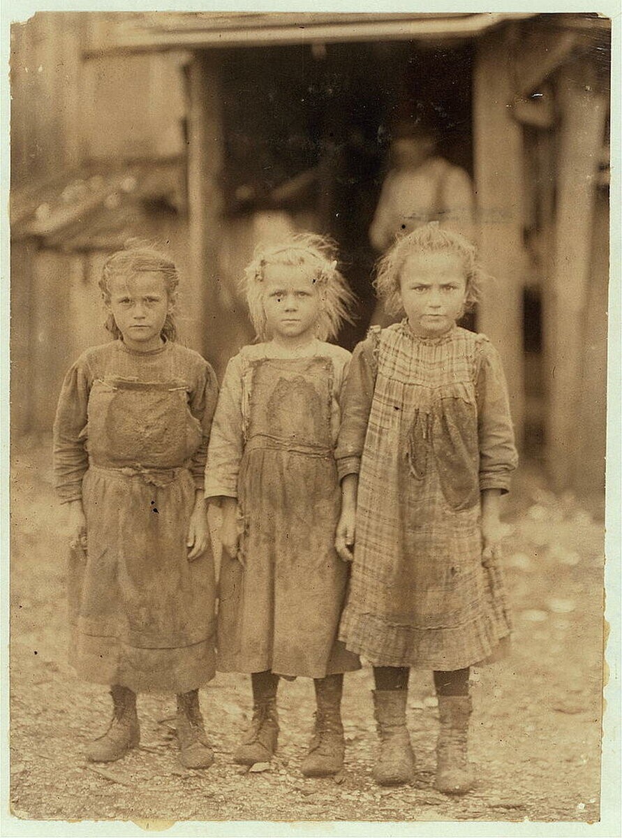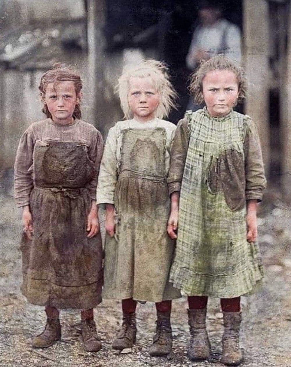 Ви, можливо, бачили цей кадр у мережі. Нерідко знімок використовують у комічних цілях, мовляв, подивіться, які замарашки. Віра, Надія та Любов. Ха-ха, хі-хі. Але насправді нікому не забажаєш такого дитинства, як трьом похмурим, втомленим дівчаткам, яких сфотографували у лютому 1911 року після важкої робочої зміни. Їм лише 6 і 10 років! Сльози навертаються на очі, коли розглядаєш фото з ними та розумієш, як їм жилося.