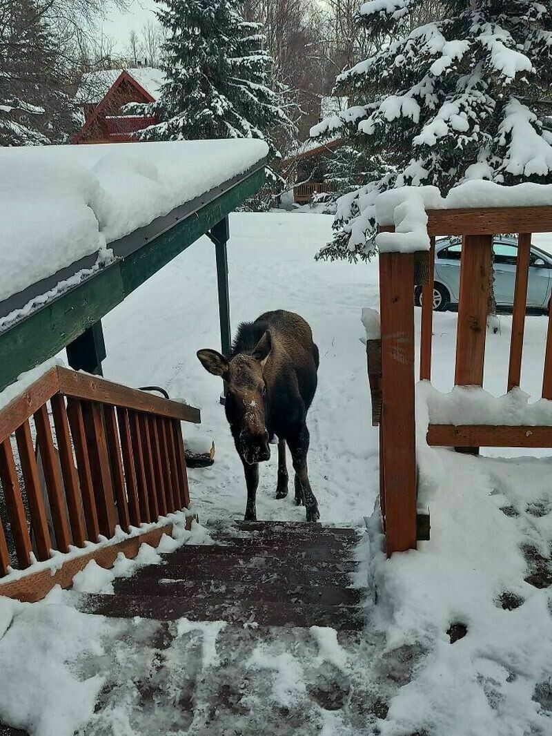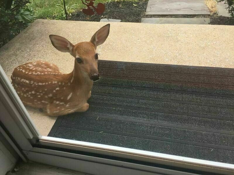Мама-олень залишила своє дитинча на ганку, щоб за ним наглядали, і пішла у своїх справах