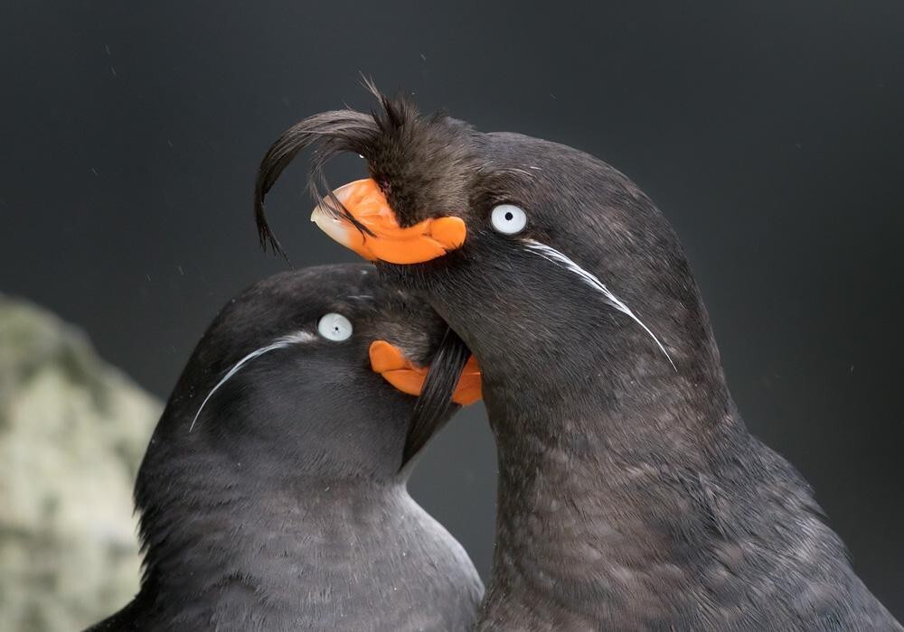 Але це для нас, дурних людей, пернаті виглядають екстравагантно. Їх самих все влаштовує. А ще вони мають абсолютно дивовижною опцією. З приходом шлюбного сезону, ближче до кінця весни пташки починають видавати різкий аромат цитрусів, щоб привернути увагу потенційної пари. Для цього кожна особина має особливий пучок. пір'я між лопатками. Коли хохлатики починають пахнути, то аромат мандаринів відчувається з відривом до кілометра від колонії. Тільки уявіть собі антураж – холодні води, лаконічні камені та запах Нового року.