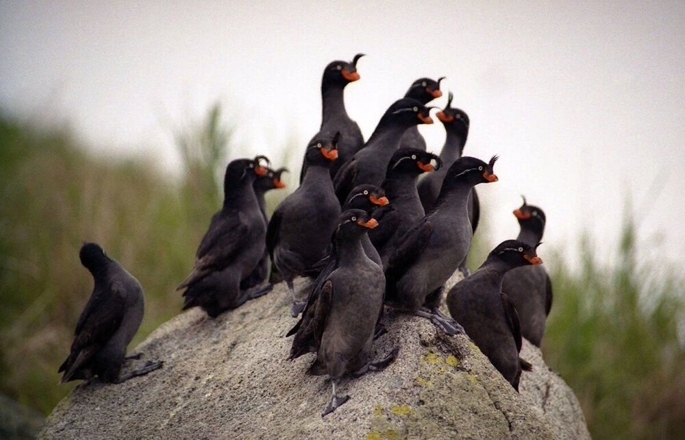 Велика конюга (Aethia cristatella) – мешканка північної частини Тихого океану та Берингового моря насправді зовсім і не велика. Довжина пернатої тушки варіюється від 18 до 25 сантиметрів. А важить це космічне виробництво 200-300 р. Конюга – справжній захисник природи. Адже все її життя – вічне дрейфування у крижаній воді з одночасним знищенням планктону.