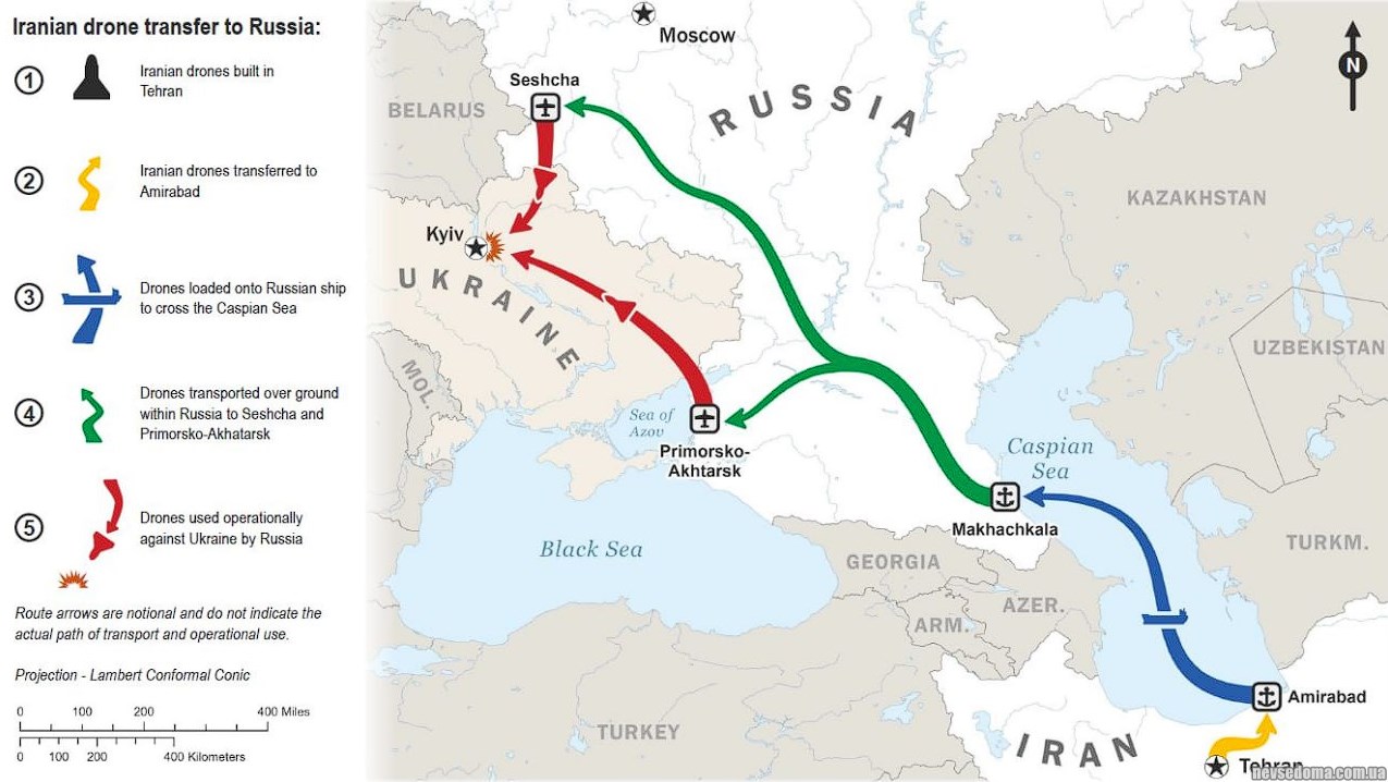 - Російська авіабаза Приморсько-Ахтарськ є однією з баз, куди доставляються іранські БПЛА-камікадзе.