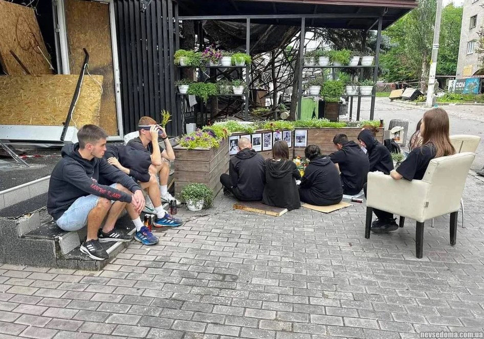 - Персонал зруйнованої піцерії у Краматорську прийшов попрощатися із загиблими колегами