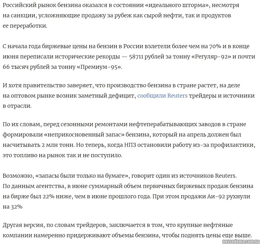 - The Moscow Times: в Росії планується дефіцит бензину. А по ТБ легко це пояснять: росіяни почали купувати більше автомобілів!