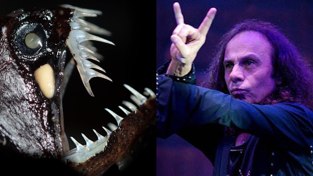 Барбара Вілларінс, провідний спеціаліст досліджень дивної риби, розповіла, що створення отримало назву "Melanostomias dio" - в честь рок-легенди Ронні Джеймса Діо, адже саме він активно популяризував "металевий" жест.
