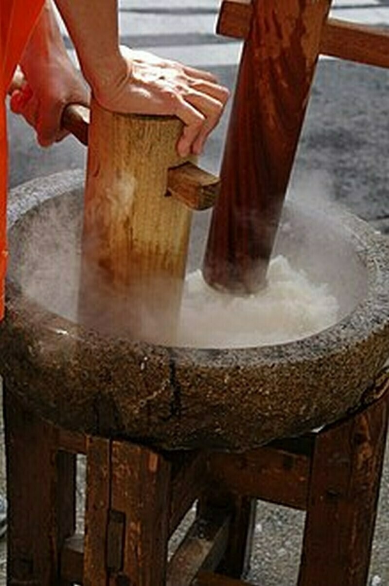 Кожен удар молотом має бути чітким, адже інакше У разі можна завдати травми своєму колезі. Після того, як тісто добре відбили, з нього роблять різні страви. На відео зображено цей процес, і в кінці з тесту отримують солодкі дайфукумоті, які люблять не тільки в Японії, а й за межами Країни сонця, що сходить.