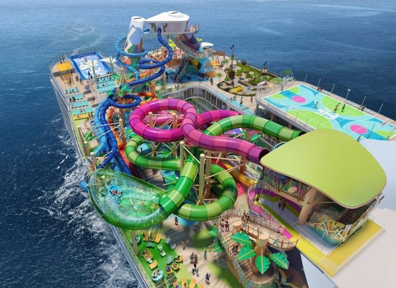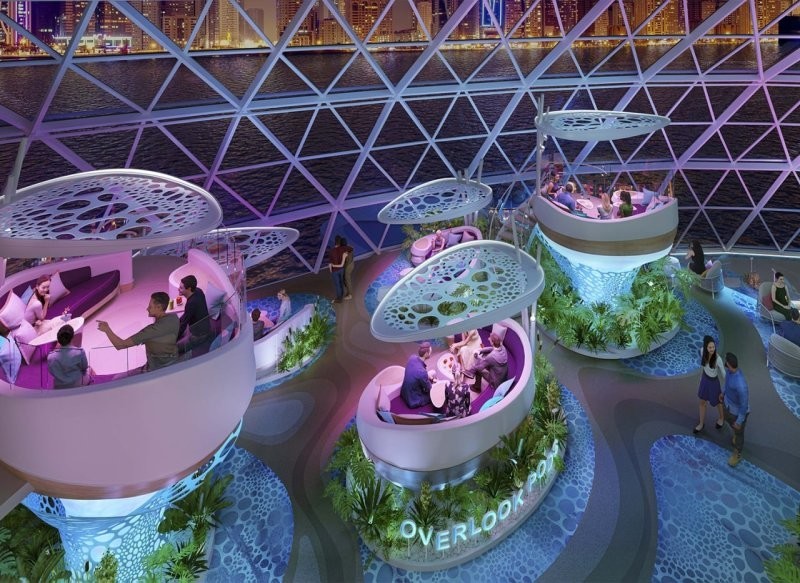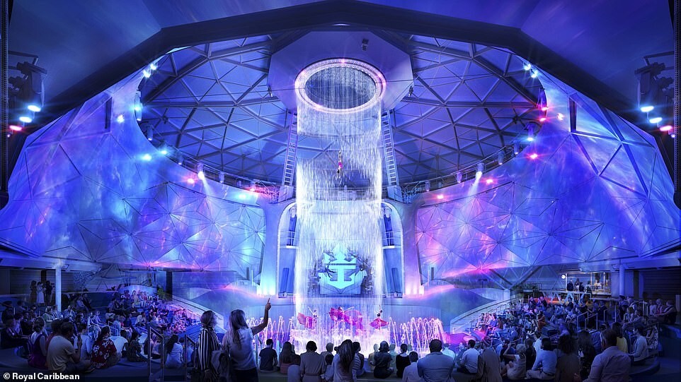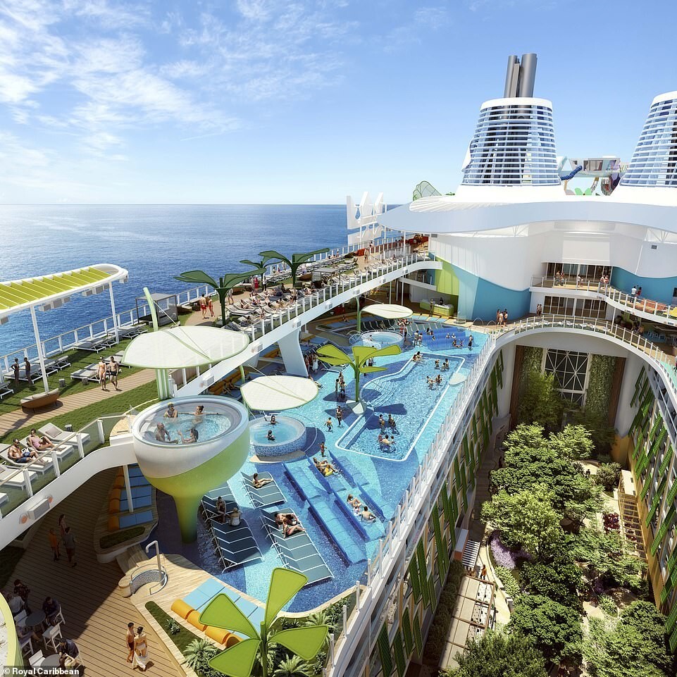 На 20-палубному кораблі є 7 басейнів, величезні водні гірки та водоспади, а також 9 величезних джакузі, 40 ресторанів, боулінг та кінотеатр. Окрім цього, пасажирів чекатимуть подання у акватеатрі - там будуть проводити шоу за участю акробатів та стрибунів у води на тлі 16-метрового водоспаду.