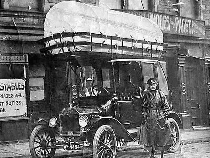 10. Таксі, що працює на вугіллі та газі, Англія. На даху автомобіля зберігалося достатньо палива для пробігу в 24 кілометри,1920 рік