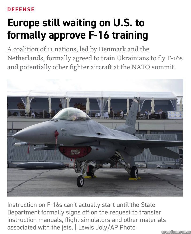 У Європі все ще чекає згоди США на навчання українських пілотів F-16.