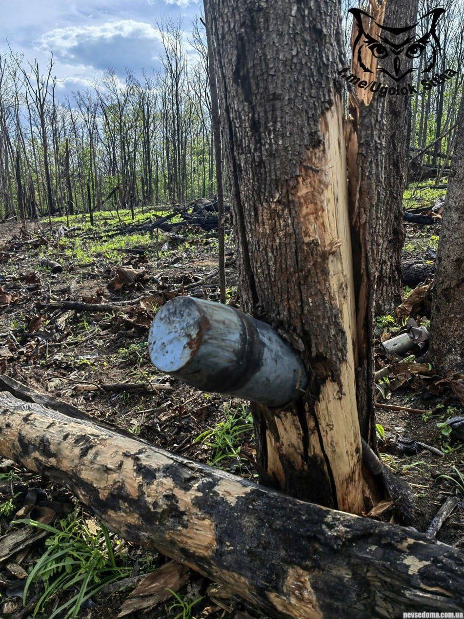 - Рідкісний знімок артилерійського снаряда, що застряг 152-мм, завершив свою кар'єру в дереві