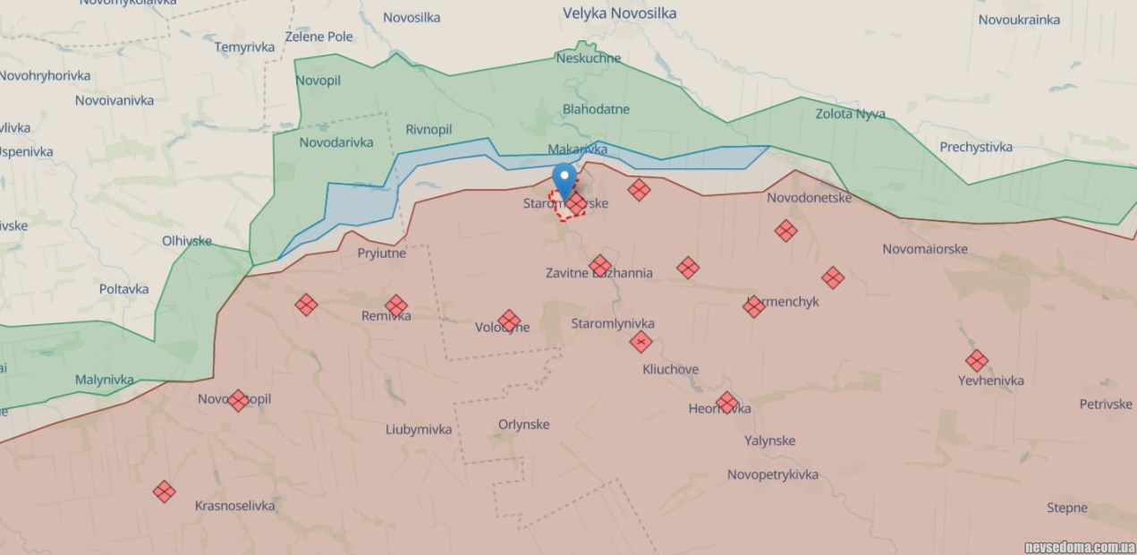 - Повідомляється, що українські сили увійшли до Старомайорського Донецької області.