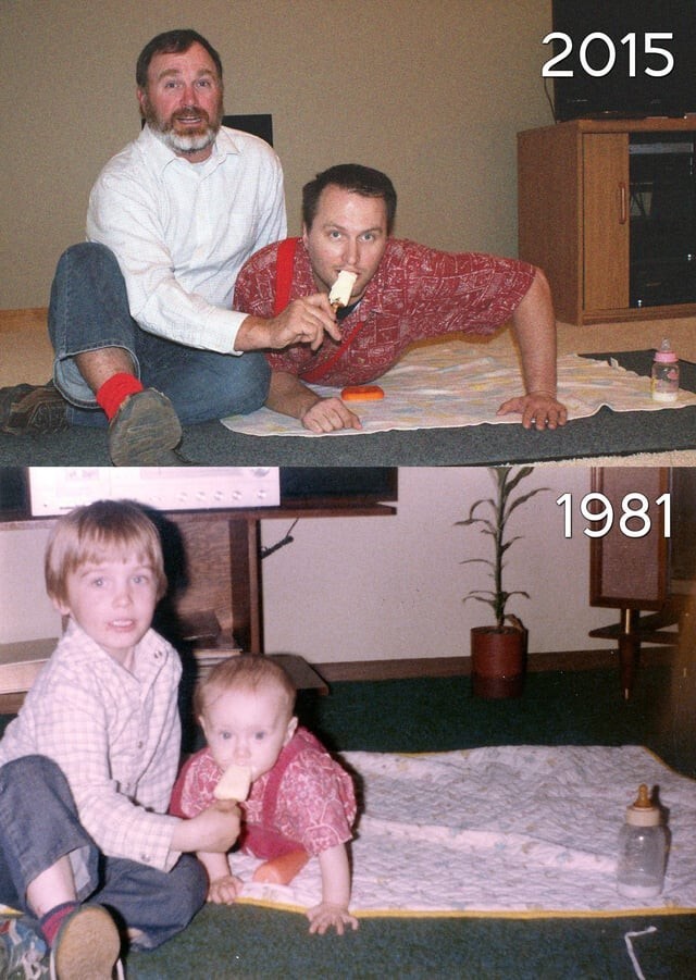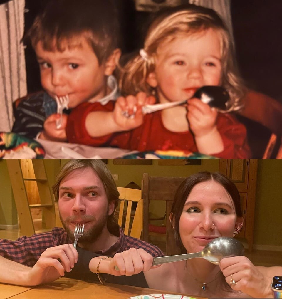 Сімейні архіви зберігають багато зворушливих моментів. Герої нашої добірки вирішили відтворити кадри з дитинства – і у них вийшло класно. Захотілося б повторити?