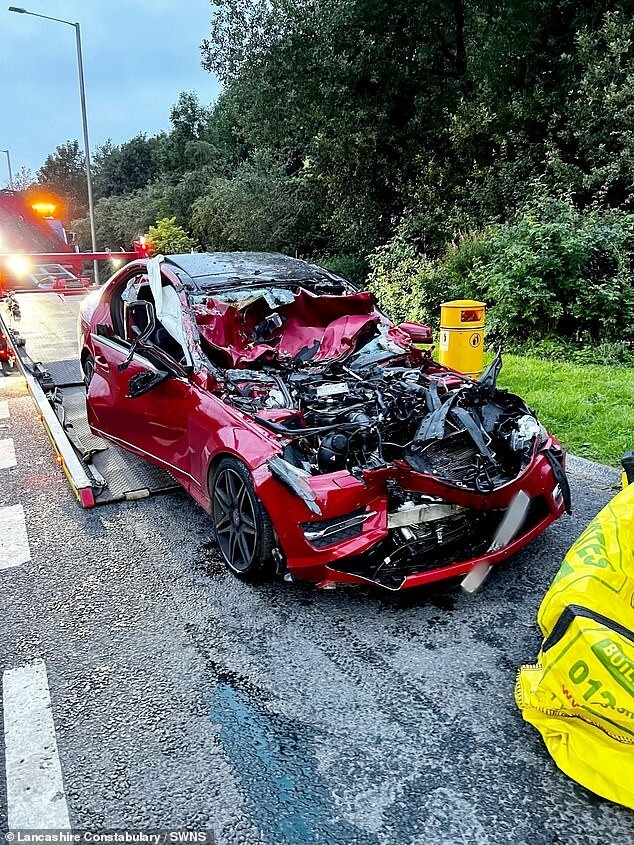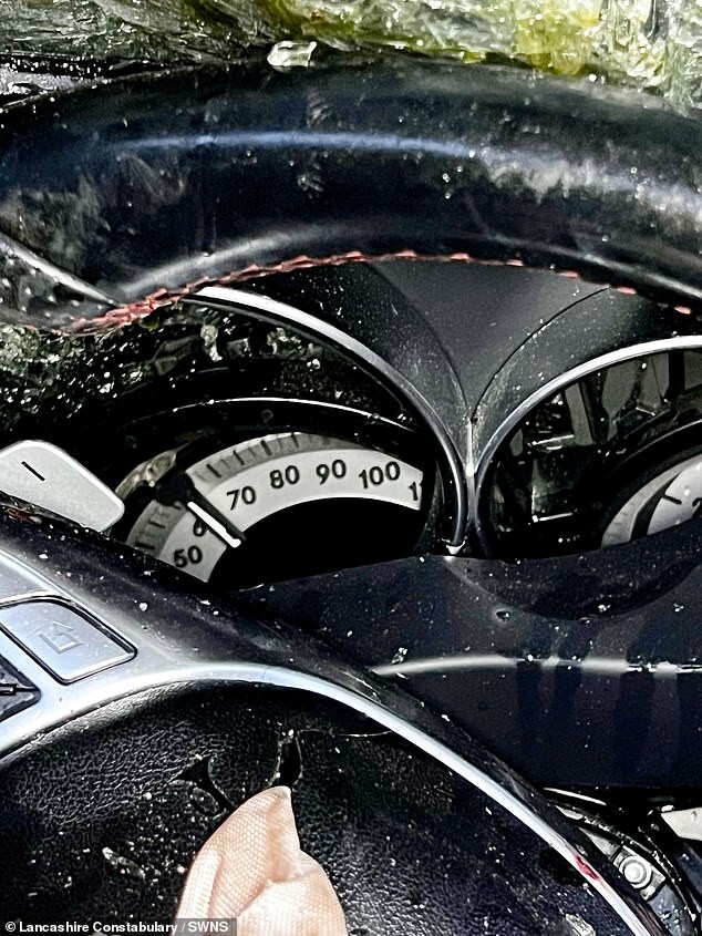 У Ротенстоллі, Великобританія, водій Mercedes на великий швидкості врізався в нерухому вантажівку. За словами співробітників поліції, вони приготувалися до гіршого, коли у п'ятницю 14 липня їм повідомили, що автомобіль "застряг під вантажівкою". Прибувши на місце, вони побачили викручений кузов з відірваним капотом.