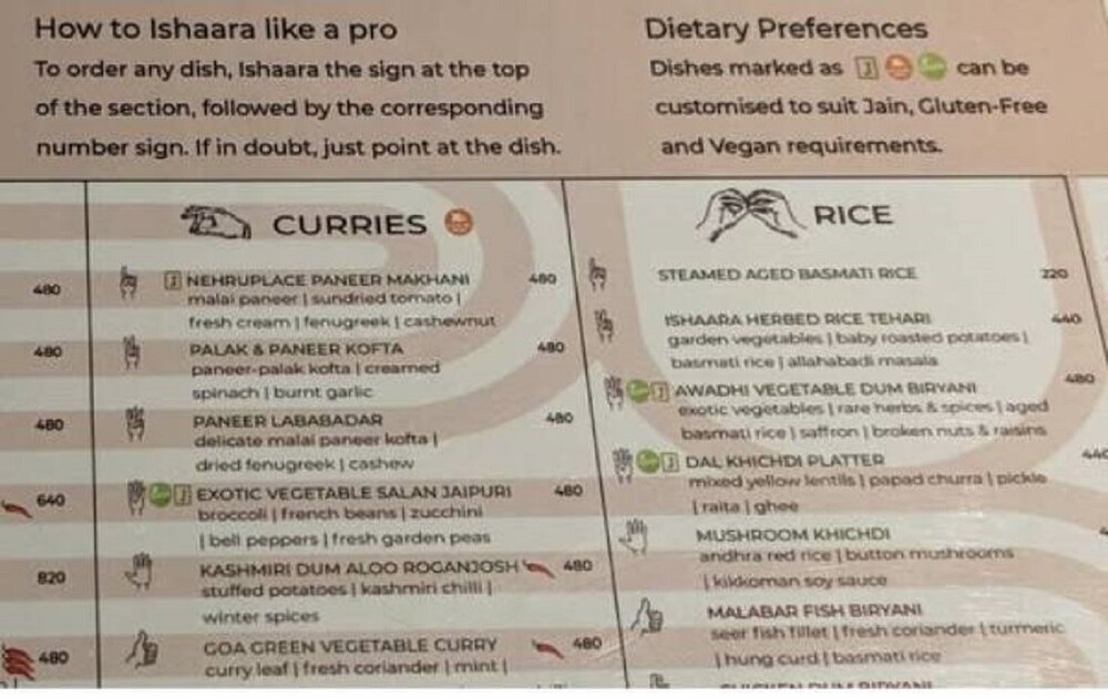 11. В Індії в одному закладі висить велика табличка з поясненням, як зробити замовлення мовою жестів