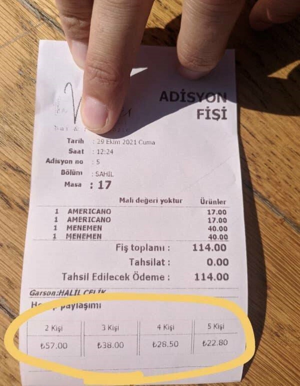 16. У Туреччині є ресторан, у чеках якого показано, як можна легко розділити рахунок, і вам не доведеться робити жодних обчислень