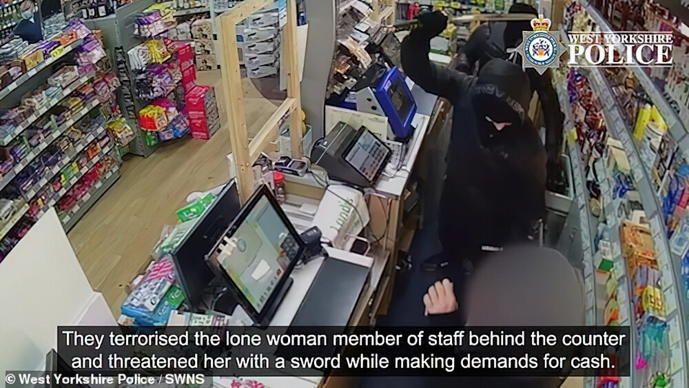 На записі, опублікованому поліцією Західного Йоркширу, чути, як Джарретт загрожує продавчині і каже їй: «Відкрий касу, інакше тобі буде боляче». Вона намагається відкрити касу, головоріз у масці замахується мечем і кричить: «Відкрий, чи я тебе вдарю». Потім сам зламує касу. Загалом, виглядає це моторошно, тому що в руках у відморозків мечі і не факт, що вони не пустять їх у хід.