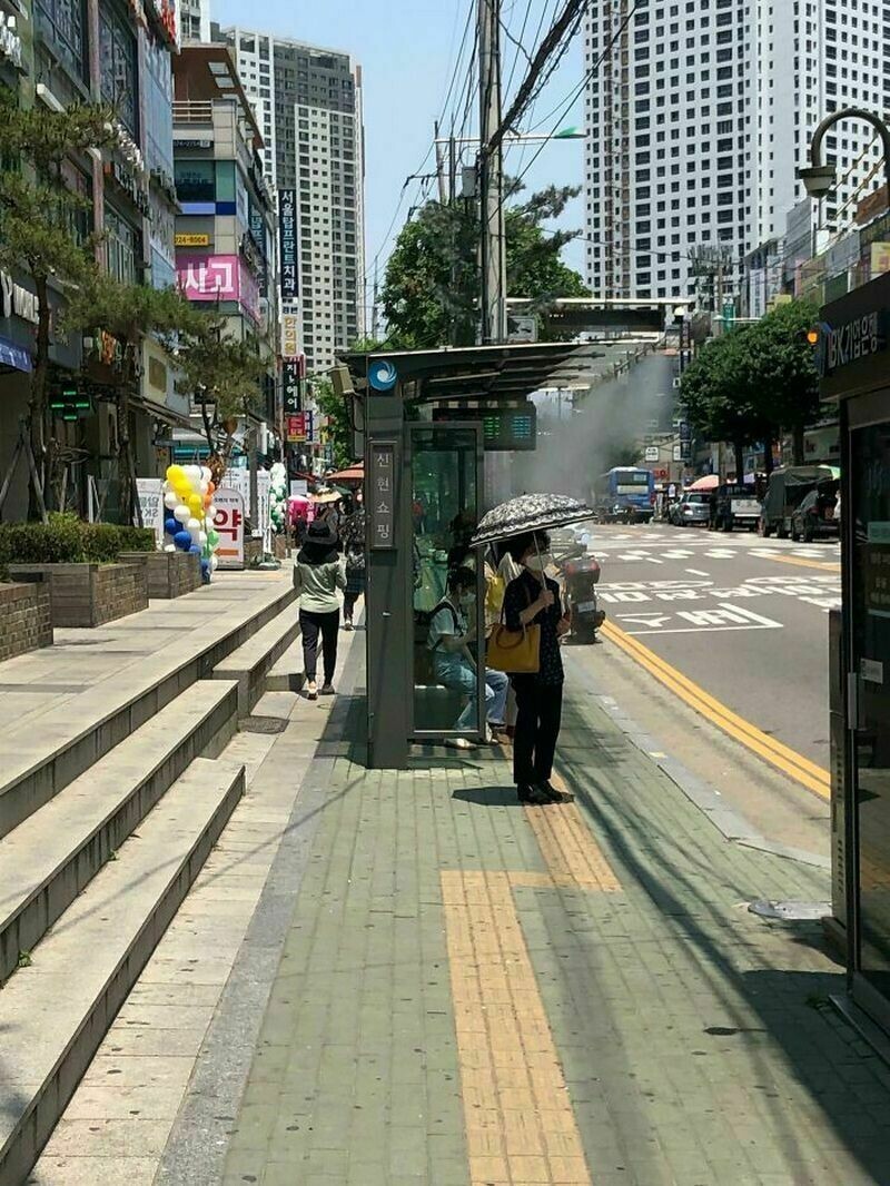 Автобусна зупинка в Кореї, яка розпорошує туман, щоб не було спекотно