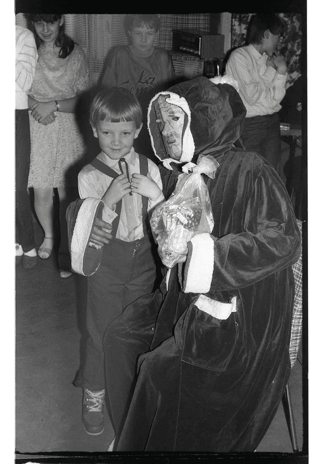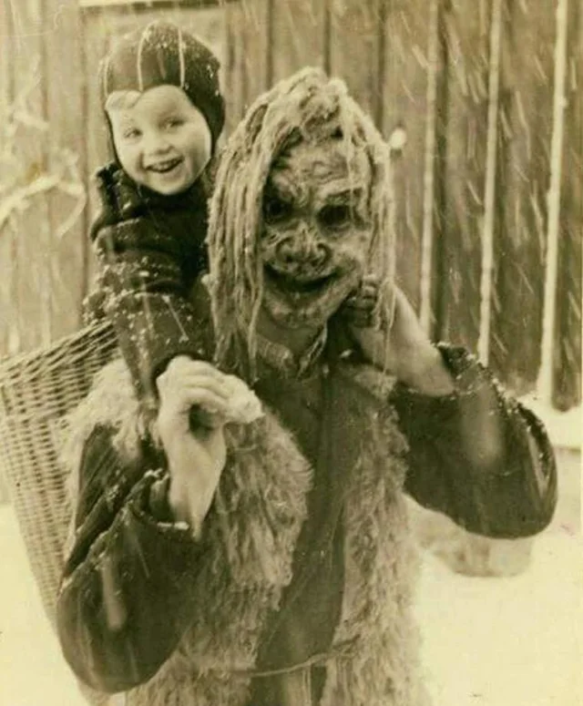 Крампус – це «різдвяний біса» у європейському фольклорі. Супроводжує святого Миколая, лякаючи неслухняних дітей. У нього часто вбираються під час обхідного обряду в ніч із 5 на 6 грудня. На світлині вище ми й бачимо людину у костюмі Крампуса.