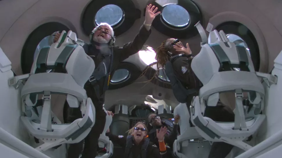 Коли екіпаж досяг кордону з космосом, один із інструкторів показав великий палець вгору, після чого всі відстебнули ремені безпеки і почали ширяти в невагомості.