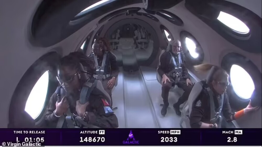 Історичний політ відбувся з космодрому в Нью-Мексико. серпня о 10.30 ранку за місцевим часом. Пасажири піднялися на борт космоплана VSS Unity, що знаходився під крилом двофюзеляжного літака-носія VMS Eve.
