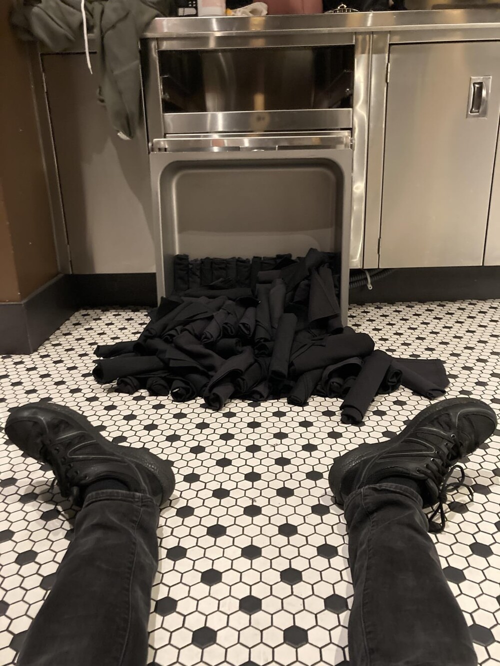 12. Я закінчила згортати столові прилади після одинадцятигодинної зміни. Тільки для того, щоб ящик, який я завантажила, впала на підлогу