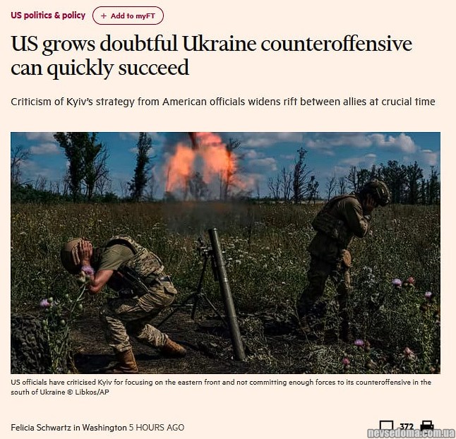 У Києві та Вашингтоні звучать заклики забезпечити Україну важким озброєнням на тлі «повільного просування контрнаступу».