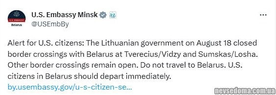 - Держдепартамент США закликав своїх громадян негайно залишити Білорусь.