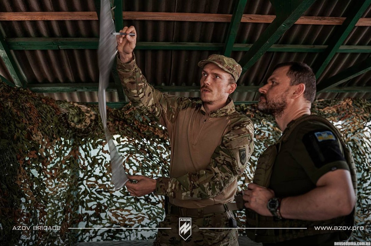 Він засвітився на фото з головою МВС Ігорем Клименком, який прибув на одну із дільниць фронту.